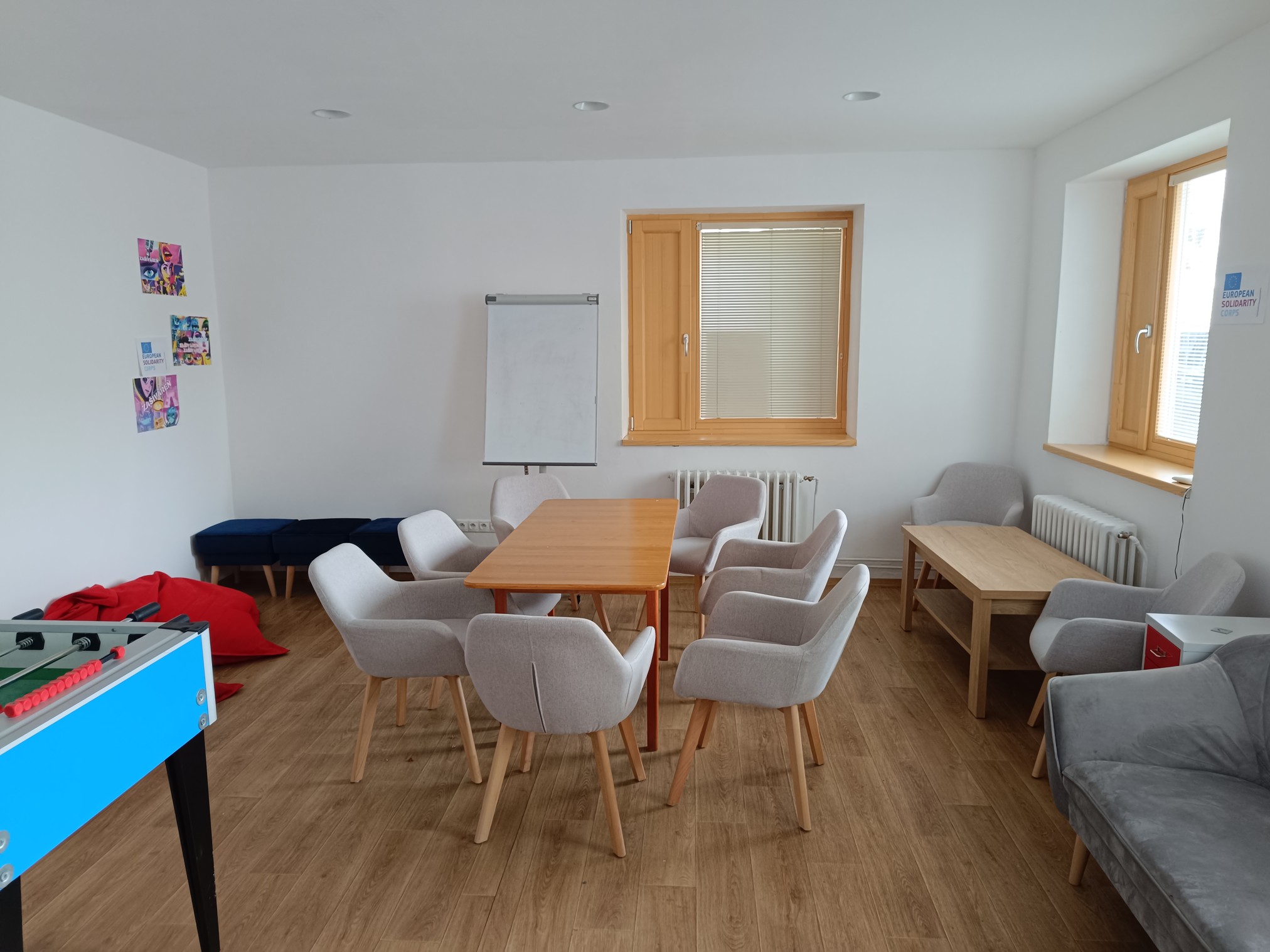 Spoločenská miestnosť vhodná na besedy, prednášky, školenia, má rozlohu cca 55 m² a jej využitie je vhodné pre max. 20 účastníkov. K dispozícii je dataprojektor a flipchartová tabuľa.