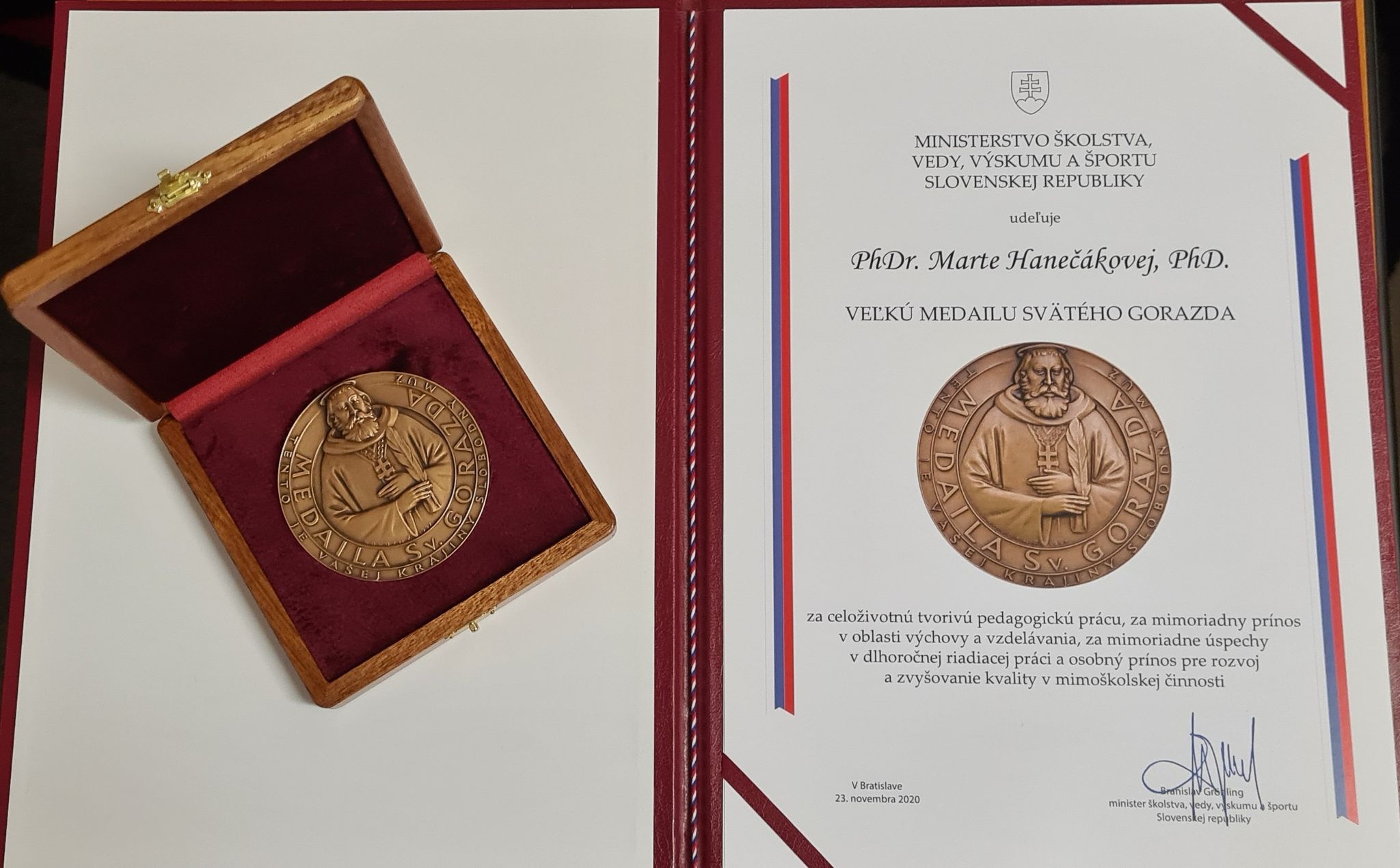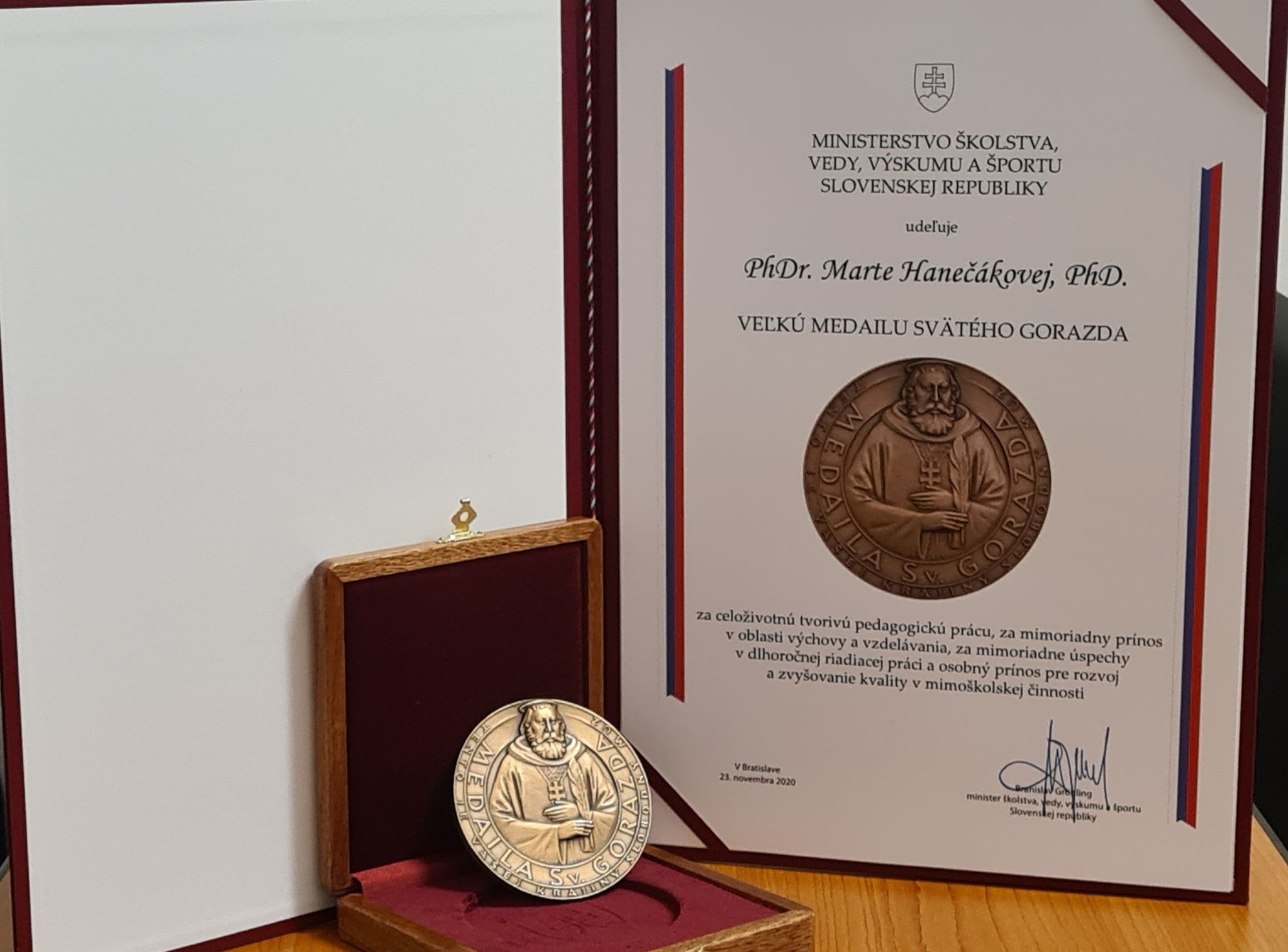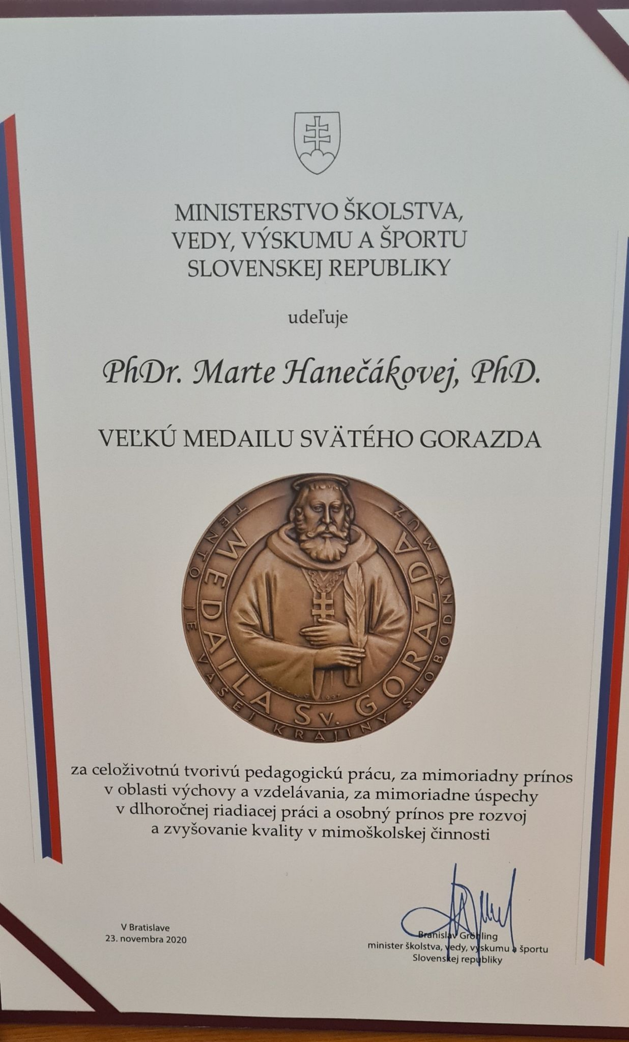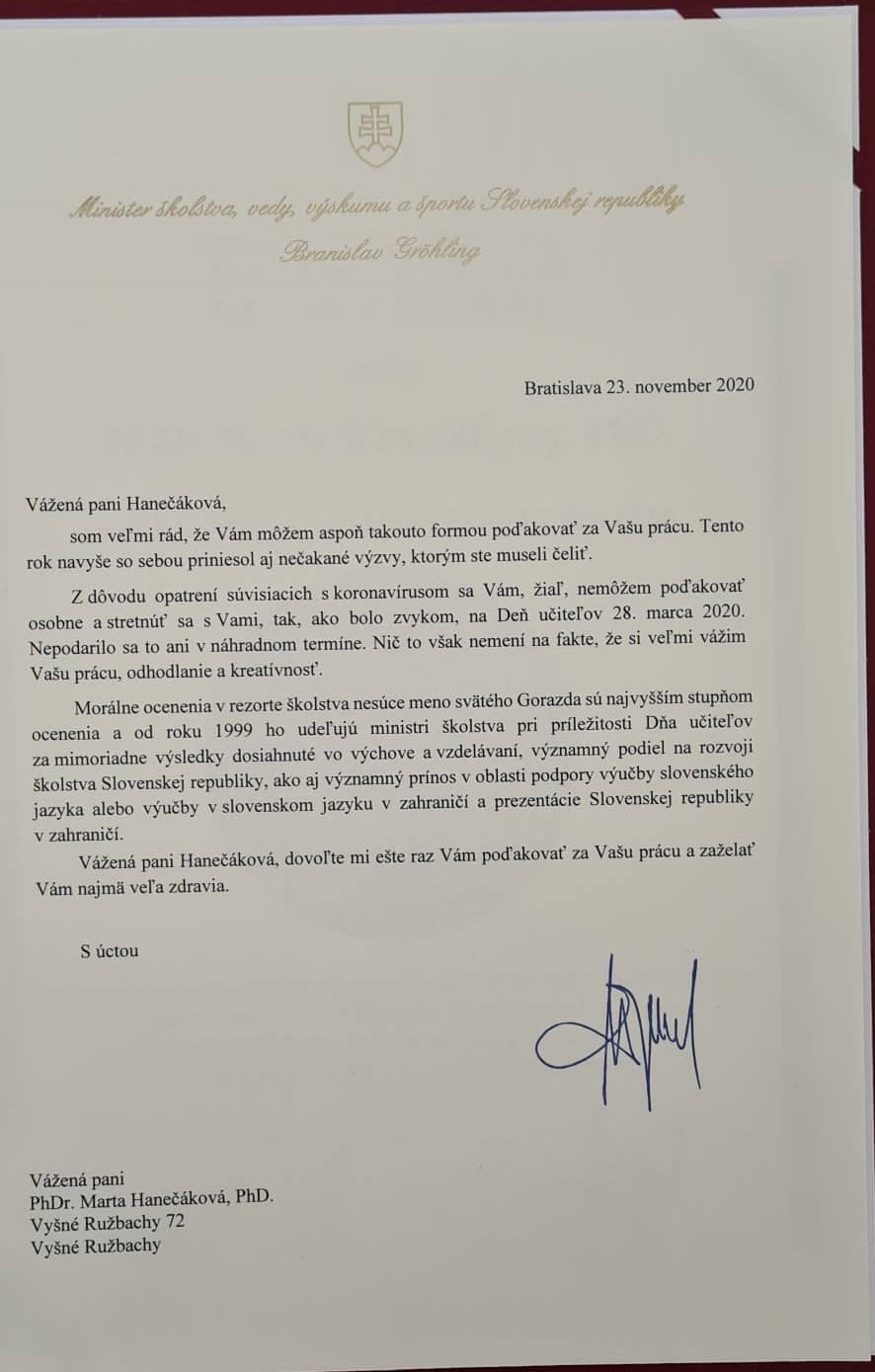 Ministerstvo školstva Slovenskej republiky na návrh Mesta Stará Ľubovňa a Centra voľného času v Starej Ľubovni udelilo najvyššie ocenenie rezortu - VEĽKÚ MEDAILU SV. GORAZDA PhDr. Marte Hanečákovej, PhD. riaditeľke CVČ za celoživotnú tvorivú pedagogickú prácu, za mimoriadny prínos v oblasti výchovy a vzdelávania, za mimoriadne úspechy v dlhoročnej riadiacej práci a osobný prínos pre rozvoj a zvyšovanie kvality v mimoškolskej činnosti.