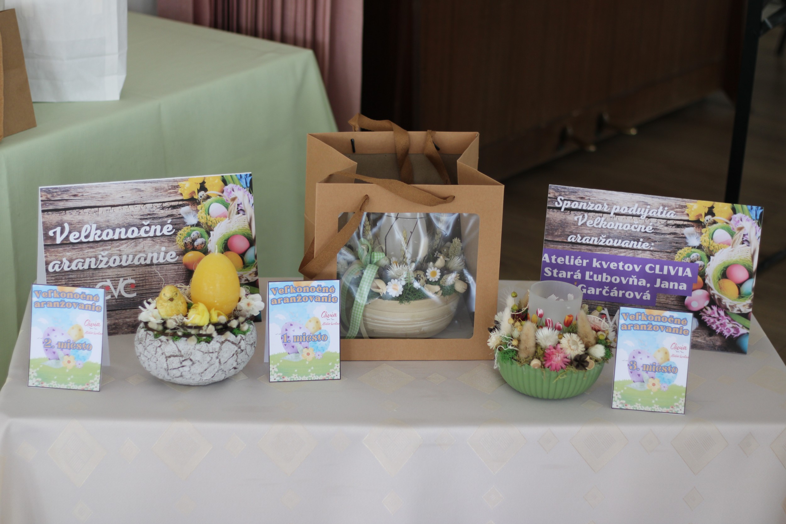 Sponzorom podujatia bola p. Janka Garčárová, Ateliér kvetov CLIVIA v Starej Ľubovni, ktorej patrí poďakovanie za podporu podujatia. Vytvorené veľkonočné dekorácie si súťažiaci odniesli do svojich škôl a domovov, kde budú spríjemňovať prostredie a dotvárať pravú jarnú veľkonočnú atmosféru. PhDr. Alena Hriňáková